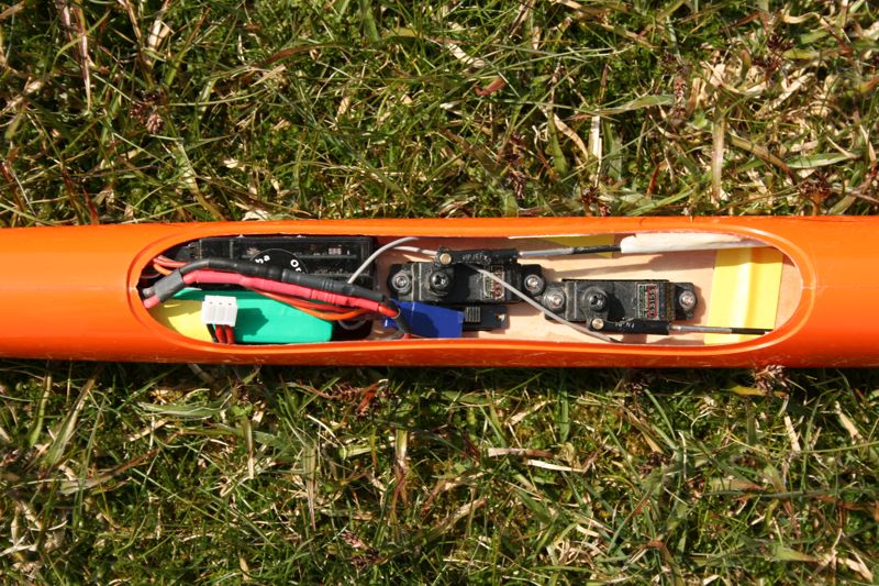 wieder Futaba S3150 verbaut, im Rumpf arbeiten am V-Leitwerk zwei Futabe S